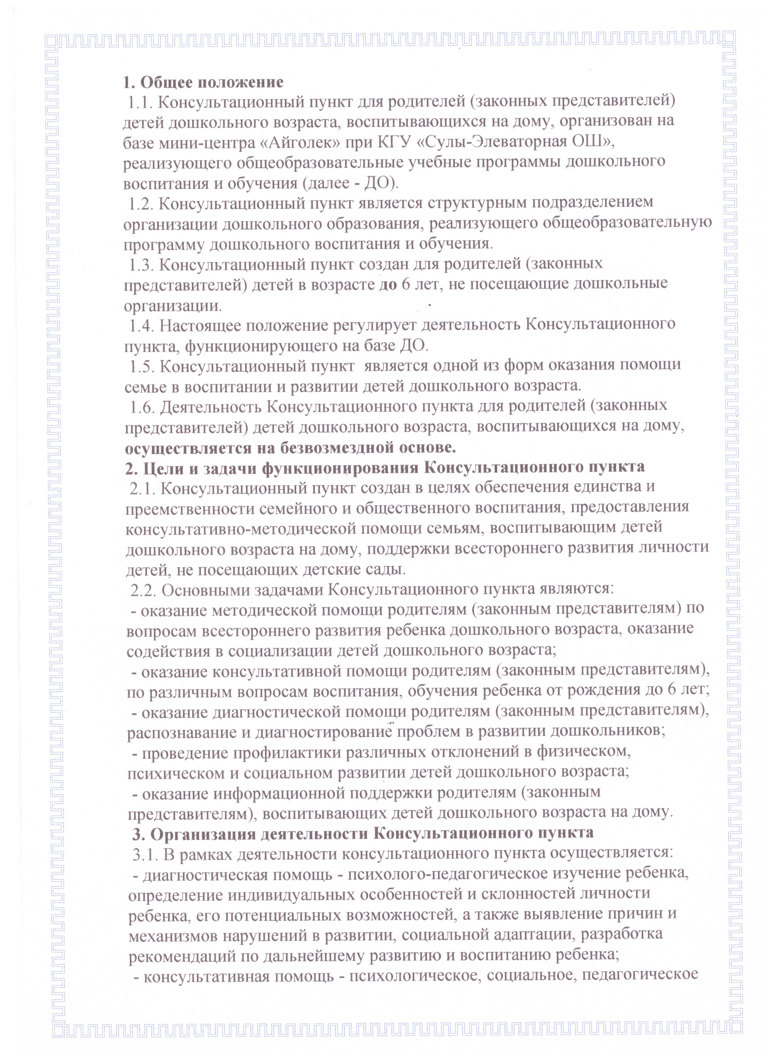 Положение о консультационном пункте